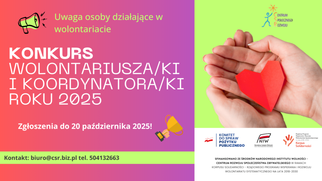 Centrum Społecznego Rozwoju ogłasza Konkurs dla wolontariuszy i koordynatorów wolontariatu Korpusu Solidarności z terenu Mikołowa, Tychów i Pszczyny! Edycja 2025